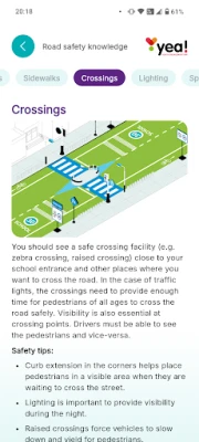 The Youth Engagement App (YEA) is a digital risk-perception tool to enable youth to mark map locations and report how safe they feel on their way to school. It aims to be a communication channel among youth and the decision makers, raising awareness of road safety and community engagement.