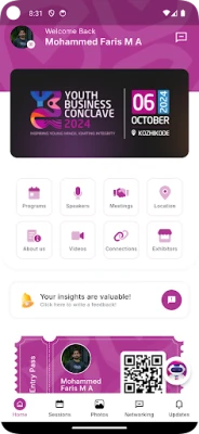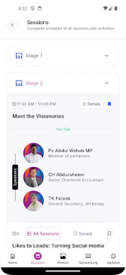 Event Schedule: Stay updated with a detailed itinerary of sessions happening throughout the event. Easily view session times, titles, descriptions, and locations to plan your day effectively.